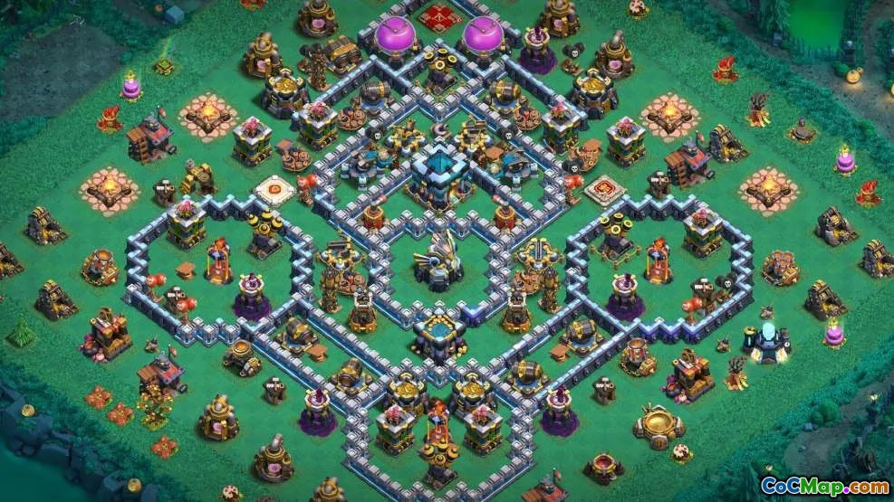 Clash of Clans offers a variety of base layouts for players to optimize their performance in different game modes like home village, trophy pushing, and clan wars. Specifically, players can search for layouts tailored for Town Hall 13, which is one of the advanced stages in the game. Each base layout is designed with strategic placement of buildings and defenses to protect resources from enemy attacks and to enhance the chances of winning battles.