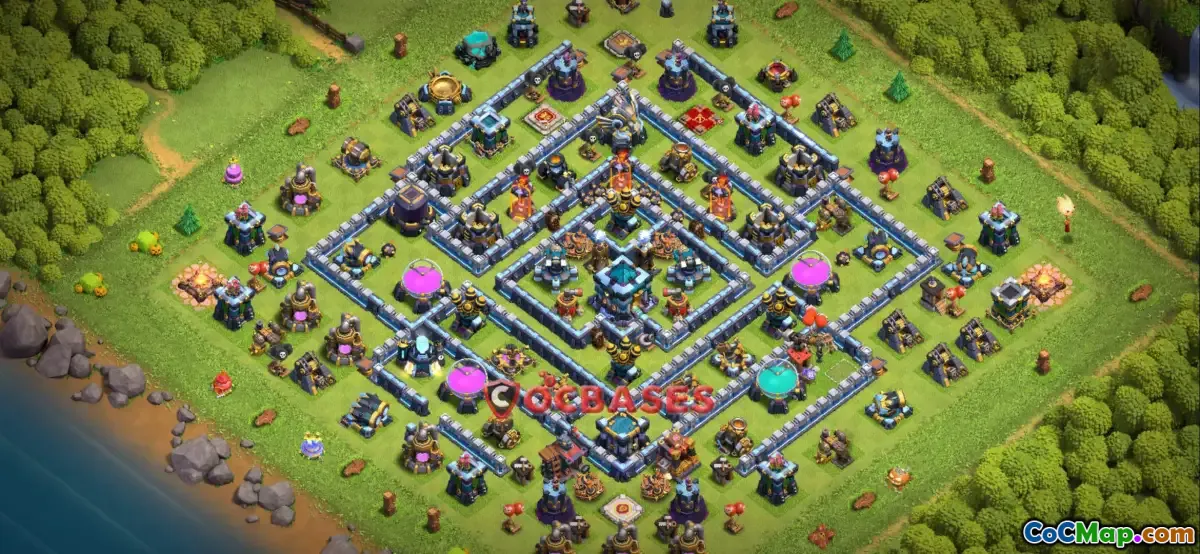 One of the standout features of a Town Hall 13 hybrid base is its ability to thwart Queen Walk strategies. Queen Walks, where players use their Queen to clear out defenses and create a path for their main attack, can be highly effective. However, a well-constructed hybrid base will include traps and defensive buildings that can disrupt this tactic. By positioning defensive buildings like X-Bows or Inferno Towers in locations that force the Queen to engage with them, the hybrid base can significantly hinder an opponent’s plans right from the start of the attack.