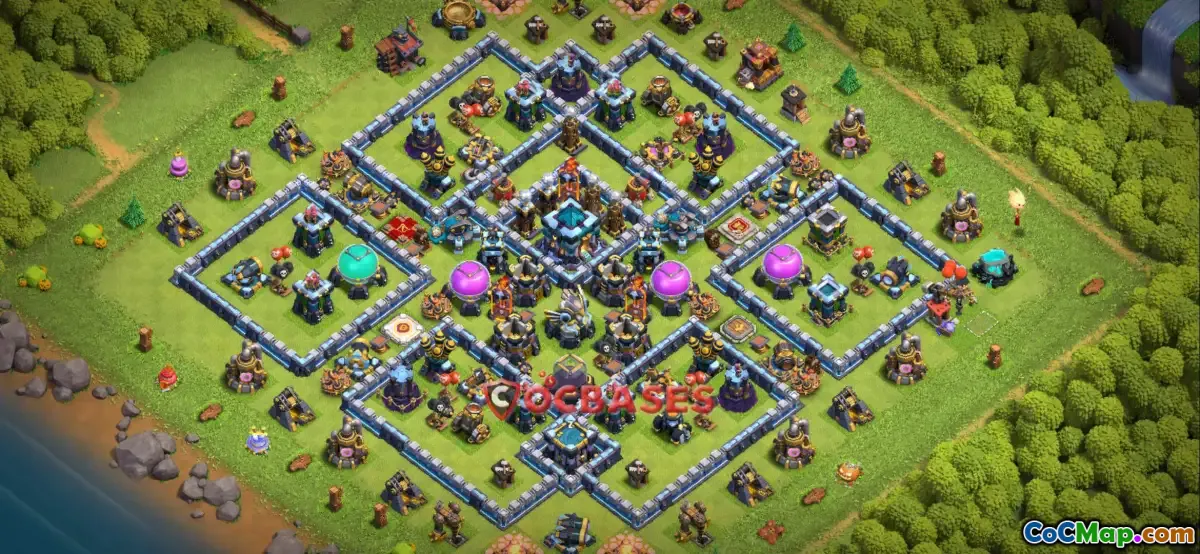 In addition to its aesthetic appeal and strategic advantages, the Town Hall 13 trophy base incorporates various defensive structures. These structures are placed in such a way that they cover critical areas of the base while ensuring that they support each other. For instance, defenses like X-Bows, Eagle Artillery, and inferno towers can be positioned to protect the core of the base, making it difficult for opponents to achieve a three-star victory.