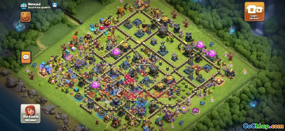 Discover an expertly designed Town Hall 18 war base that offers robust defenses against enemy attacks. This layout incorporates well-placed heroes, traps, and walls to create a resilient barrier, making it difficult for opponents to breach your base during clan wars.