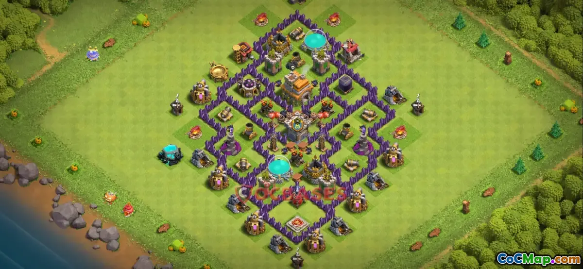 In addition to safeguarding resources, the Town Hall 7 farming base is engineered to be anti-three stars. This means that the layout is structured in a way that makes it challenging for attackers to earn three stars by destroying the Town Hall and securing all key objectives. By distributing defensive units effectively across the base, players can significantly reduce the chances of a full destruction during enemy raids.