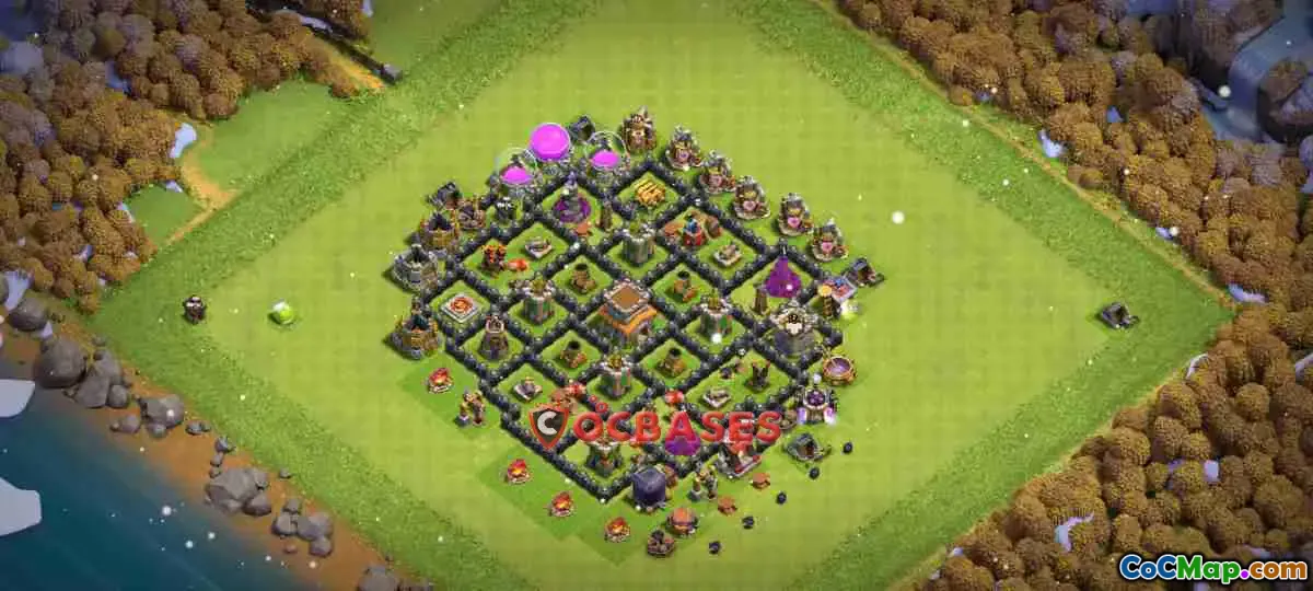 Discover the ultimate Town Hall 8 trophy base! Protect against 2 stars with our asymmetric design, effective against air, ground, and common troops. Build now!