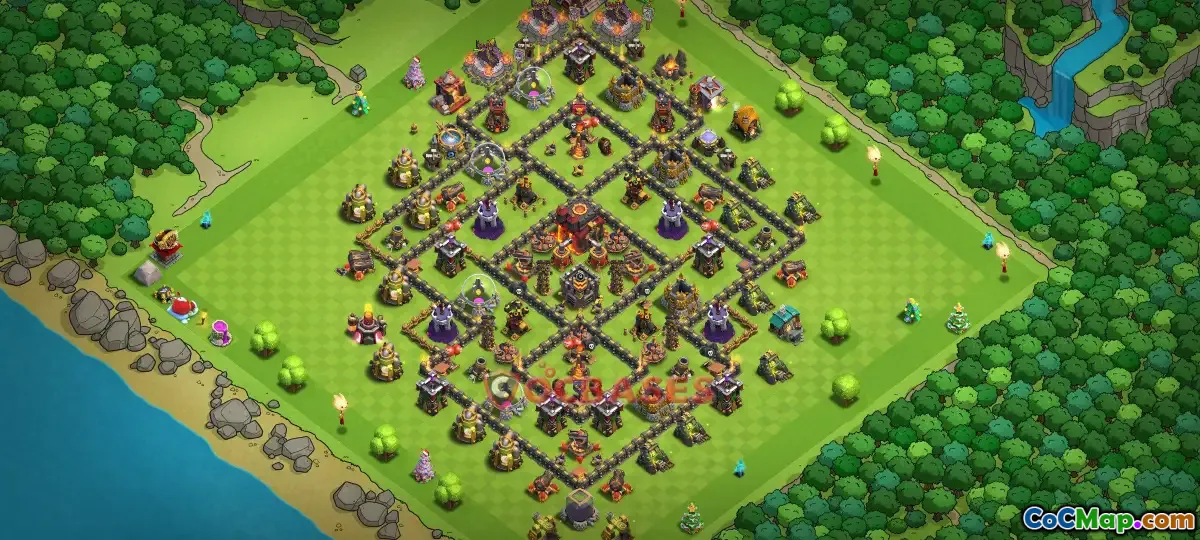 The Town Hall 10 hybrid base in Clash of Clans is designed to offer a balanced defense strategy, combining features suitable for both trophy pushing and farming. This type of base typically incorporates well-planned layouts that protect crucial resources like gold, elixir, and dark elixir while also providing strong central defenses for the Town Hall itself. Hybrid bases are popular among players because they allow for flexibility in attack strategies, making them effective against various types of enemy assaults.