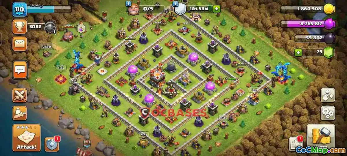 The base layout incorporates specific features to counter a range of offensive troops commonly used in Town Hall 11 attacks. Notably, it is effective against Electro Dragons, Hog Riders, Dragons, Valkyries, and Miners. By strategically placing defenses and designing the base in a ring structure, it creates challenges for attackers, forcing them to work harder to achieve their goals and protecting vital resources in the process.