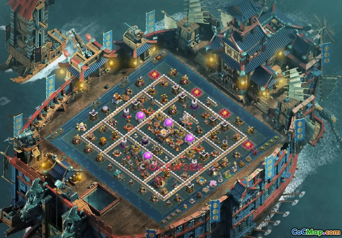 This Town Hall 11 hybrid base layout offers a perfect blend of defensive strength and offensive flexibility, making it ideal for both farming and clan wars. Its strategic design features well-placed walls, traps, and defensive structures to distract and slow down attacking troops while safeguarding key resources and the Town Hall.