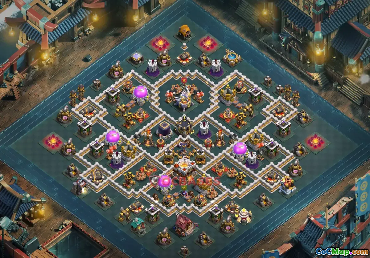 Maximize your trophy gains and defend effectively with this expertly designed Town Hall 11 trophy base. The layout strategically protects key defenses and the Clan Castle, ensuring your resources stay safe while challenging attackers.