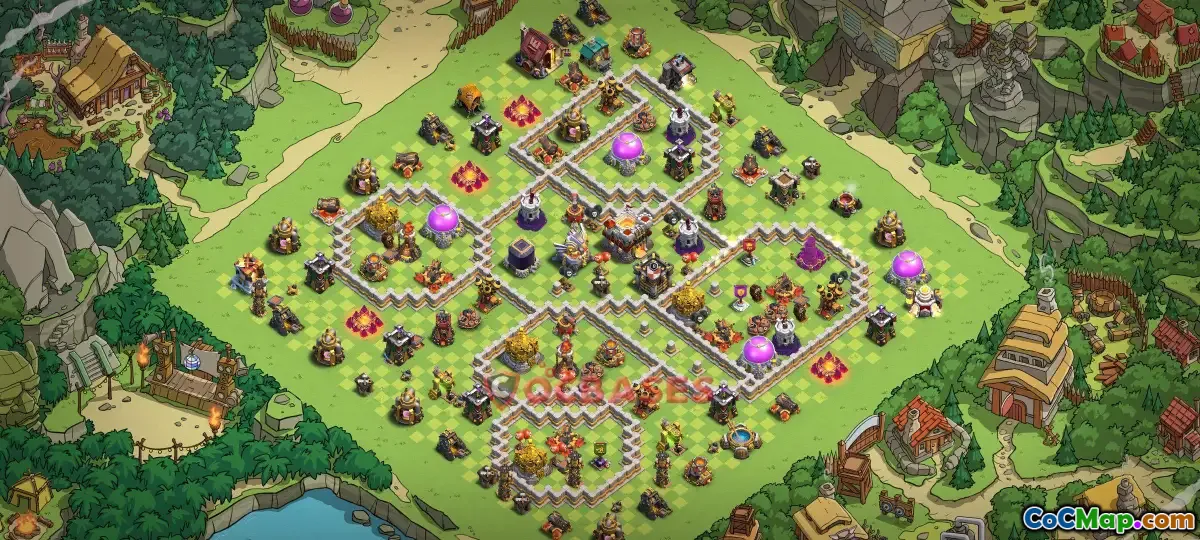 The Town Hall 11 war base in Clash of Clans is a strategic layout designed to safeguard your resources and defenses during clan wars. This level introduces new defenses and troop capabilities, making it essential for players to optimize their base design to withstand attacks from higher-level enemies. A well-structured Town Hall 11 war base typically features layered walls, strategically placed splash damage defenses like the wizard towers and mortar, and well-protected resource storages to prevent losing resources easily during attacks.