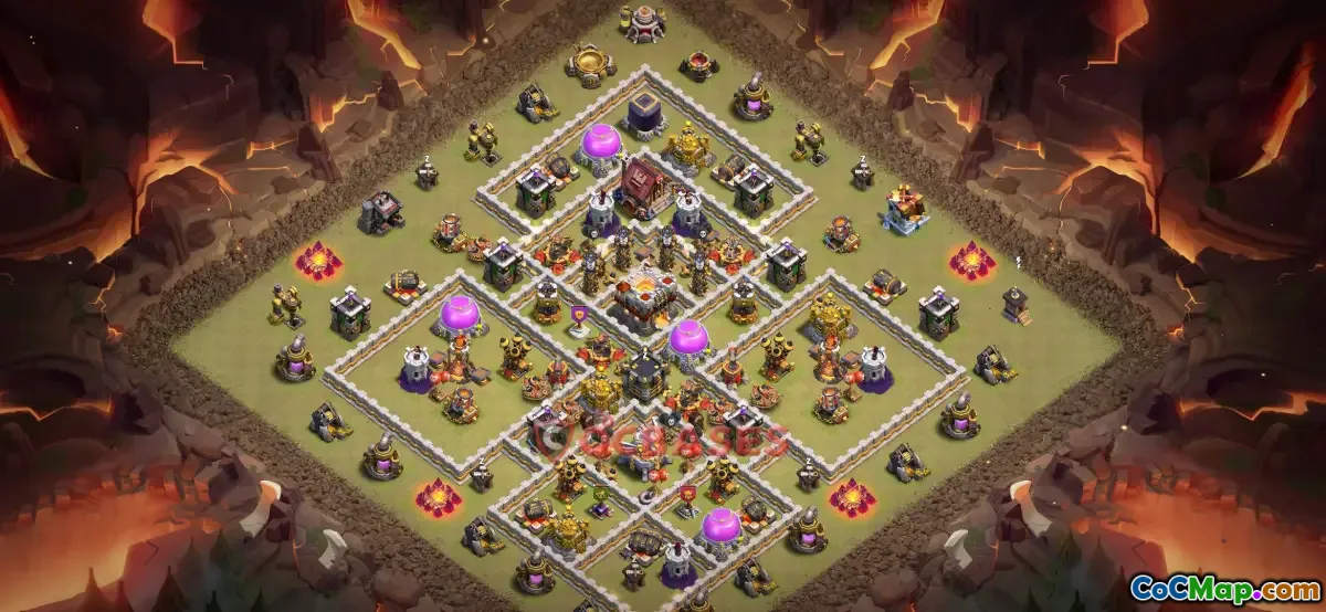 The Town Hall 11 war base in Clash of Clans is designed to strategically defend against enemy attacks during clan wars. This level offers a mix of advanced defenses and layout options that help protect the core resources and other key structures. Effective placement of walls, traps, and defensive buildings is crucial to make it difficult for opponents to penetrate the base and achieve a high percentage of destruction or obtain the available stars.