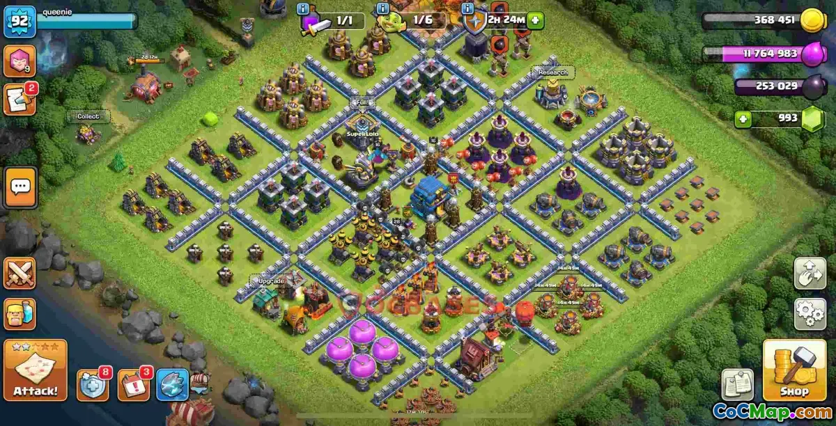 This Town Hall 12 base layout, identified by layout ID 4e7ag, is designed to provide robust protection during various gameplay modes. Its strategic split design and placement of defensive structures make it highly effective against Town Hall 12 attacks, including anti-3 star strategies, air assaults, and ground invasions. The layout emphasizes strong defenses against enemy hog riders, electro dragons, balloons, and giants, ensuring a resilient fortress for war and farming purposes.