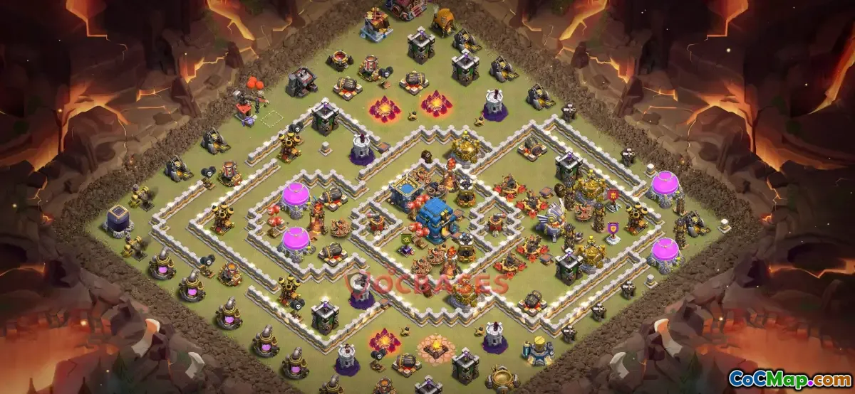 The Town Hall 12 war base in Clash of Clans is designed to maximize defense and protect your resources during clan wars. It features a well-structured layout with key defensive buildings such as cannons, archer towers, and air defenses strategically placed to cover all necessary angles. The positioning of traps, walls, and the Clan Castle further enhances the base’s ability to withstand attacks from various troop compositions. An effective design aims to create a balanced defense, making it challenging for opponents to achieve a high percentage of destruction.