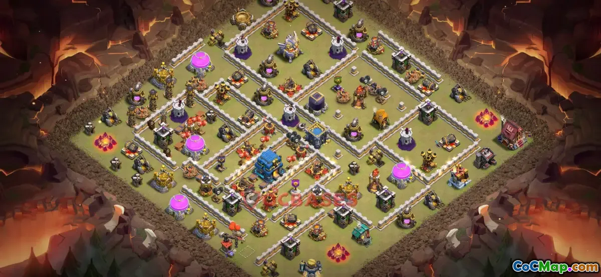 The Town Hall 12 war base in Clash of Clans is a strategic layout designed to defend against enemy attacks during clan wars. It often features well-placed defenses such as cannons, archers towers, and inferno towers, along with walls that create a layered barrier around the Town Hall. This setup aims to protect crucial structures and resource storages while making it difficult for opponents to achieve a high percentage or a three-star victory.