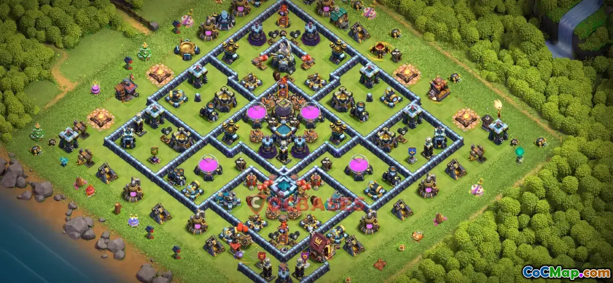 The Town Hall 13 farming base in Clash of Clans is specifically designed to help players efficiently gather resources while maintaining strong defenses. These bases typically prioritize protecting storages and key defensive structures to prevent opponents from raiding and stealing valuable loot. The design often includes well-placed walls, traps, and defensive buildings such as Archer Towers, Cannons, and the Eagle Artillery to deter attackers and reduce potential losses during farming sessions.