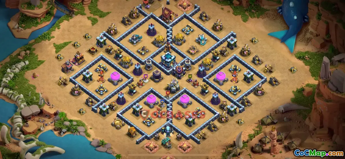 The Town Hall 13 hybrid base layout in Clash of Clans is designed to provide a balanced defense strategy that effectively protects both resources and the Town Hall itself. This type of base combines elements of farming and war layouts, making it versatile for various gameplay types. When creating or analyzing such a layout, players often focus on strategically placing defenses, traps, and walls to confuse and counterattack strategies from enemies.