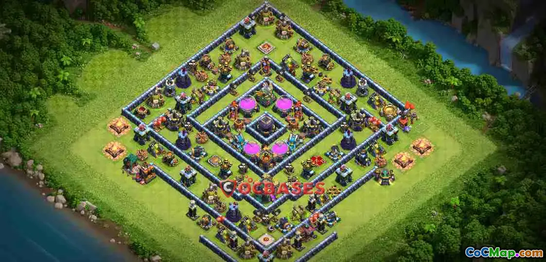 The Town Hall 14 farming base for Clash of Clans is designed specifically to protect resources while minimizing the risk of losing stars in battles. This base layout focuses on creating a formidable defense against various attack strategies. By implementing strong anti-ground measures, it aims to thwart attackers who utilize ground troops such as Giants, Miners, and Witches. The arrangement of buildings ensures that resource storages are well-protected and not easily accessible to opponents looking to loot. Players can utilize a designated copy base link to recreate this effective layout for their own gameplay.