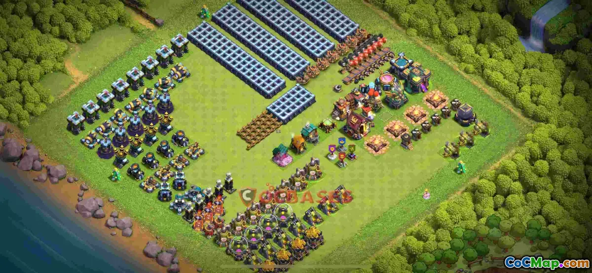 Designed to provide strong protection against attacks, this base effectively defends resources and trophies while maintaining a balanced layout. The included copy link allows easy implementation in your game, offering a reliable structure for progressing clan warfare and resource management at TH14 level.