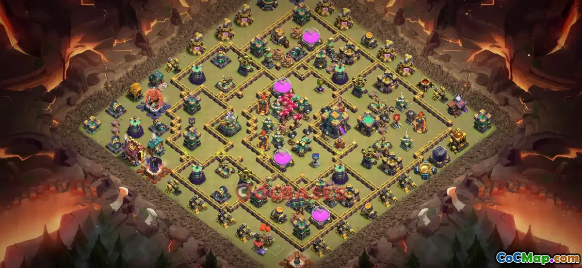 Designed specifically for Town Hall 14, this war base maximizes defensive capabilities with well-placed traps, walls, and defensive structures to protect your resources and Town Hall. The layout emphasizes centralization of key defenses and an effective compartment system to withstand attack strategies from top Clan members.