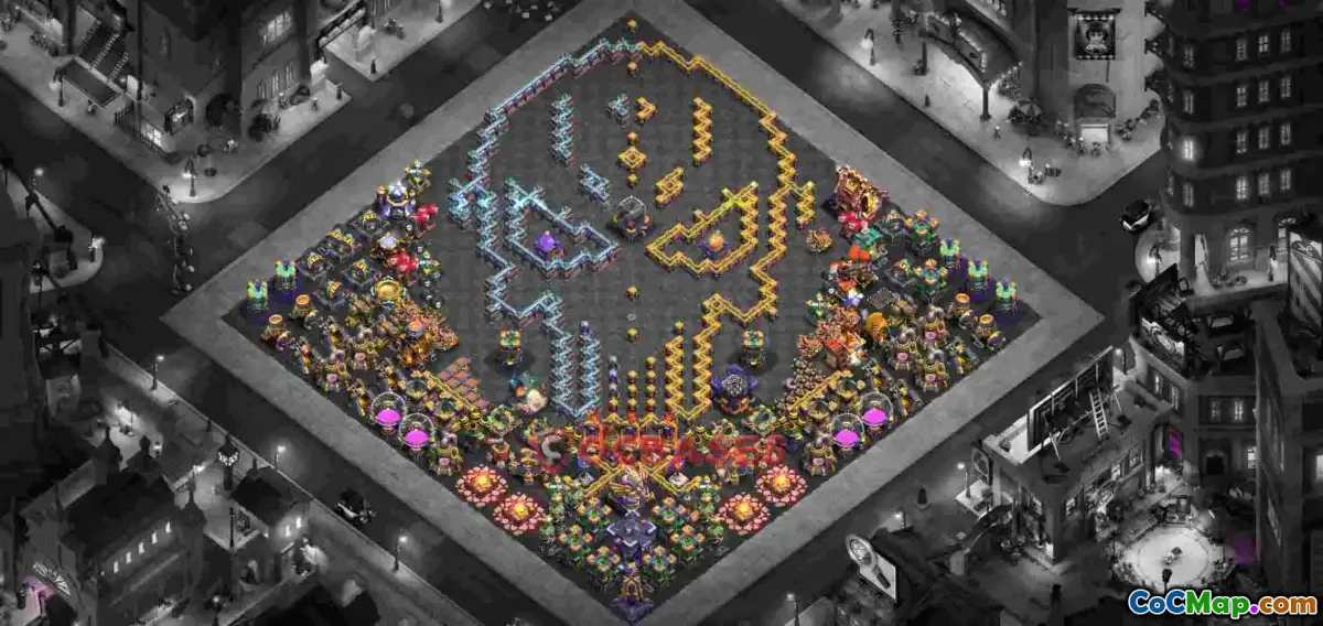 This Town Hall 15 base, identified by layout ID 29aix, offers a balanced design suitable for various gameplay strategies including war attacks, farming, and trophy pushing. Its strategic placement of defenses and traps provides solid protection against enemy raids while maintaining accessibility for loot collection.