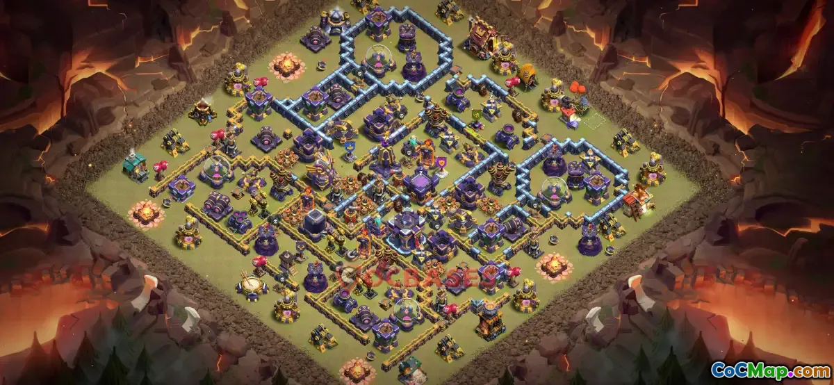 This Town Hall 15 war base is designed to maximize defense and protect your clan's trophies during Clan War battles. It features a strong core layout with well-placed air and ground defenses, ensuring that attacking troops have a difficult time breaching the base.