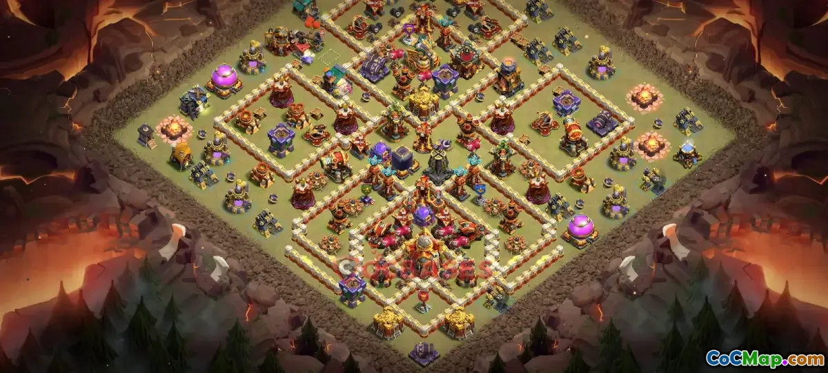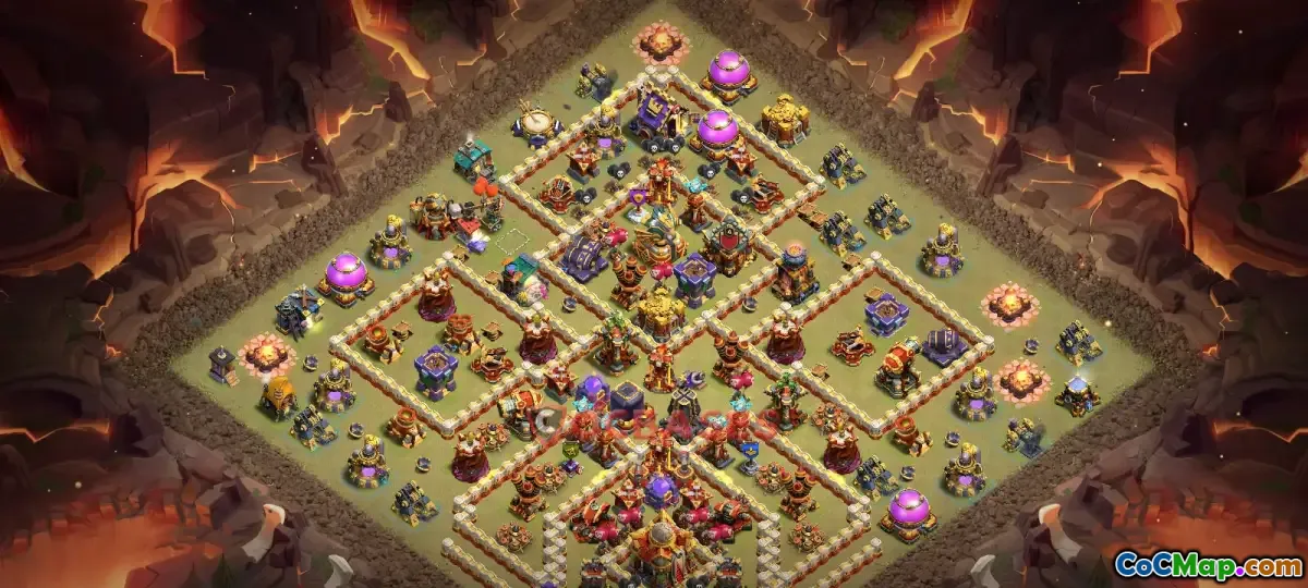 Introducing my ultimate Town Hall 16 war base designed to maximize defense during clan wars. This layout features a well-balanced placement of defenses, traps, and archer towers, ensuring that attacking armies face a tough challenge. The strategic positioning of walls and core structures aims to protect vital resources and clan castle troops, making it harder for opponents to break through.