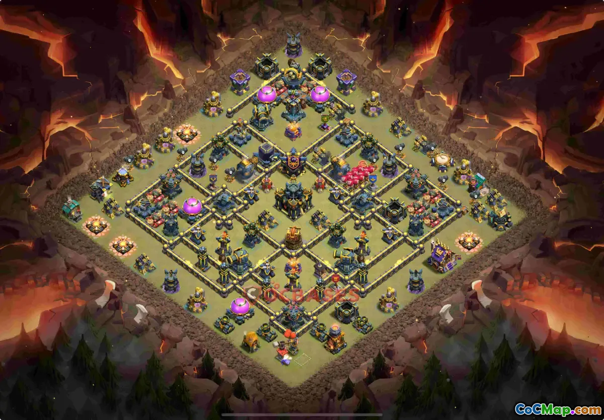This Town Hall 17 CWL base is meticulously designed to optimize defense during clan wars, incorporating a well-structured layout that protects key defenses and resources. Its strategic placement of walls, heroes, and traps creates a formidable barrier against attack strategies, especially when using Ice Golems and Goblins in the Clan Castle.
