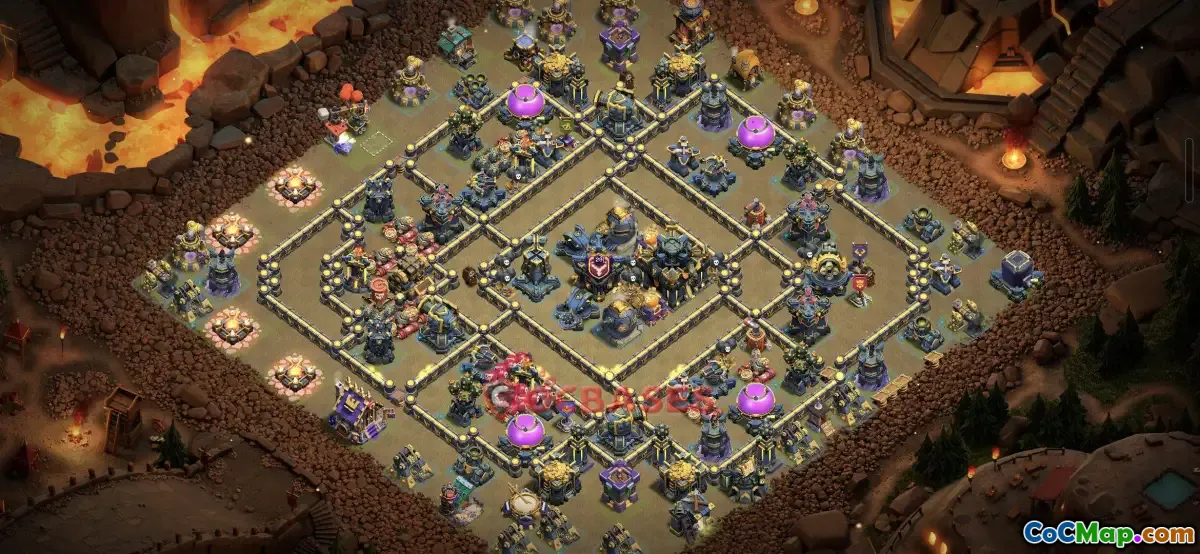 Included in this layout are strategic placements for Clan Castles featuring 2x Fire Spitter units and 1x Ice, along with Archers, enhancing defensive capabilities against air and ground assaults. The layout's adaptability makes it an excellent choice for players seeking a reliable defense system. You can easily copy the base setup to your game with the provided base link, ensuring quick implementation and ongoing protection against high-level assaults.
