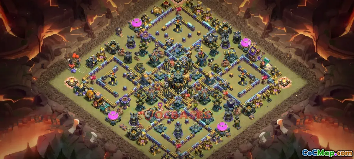 One of the central features of the TH17 trophy base is its focus on the Inferno Towers, which are powerful defenses available at this level. These towers can be set to standard or single-target mode, and their placement plays a critical role in defending against both attack strategies. A typical TH17 trophy base will have Inferno Towers positioned in a way that covers the core of the base, making it difficult for attackers to achieve a three-star victory while also safeguarding resources and town hall downtime.