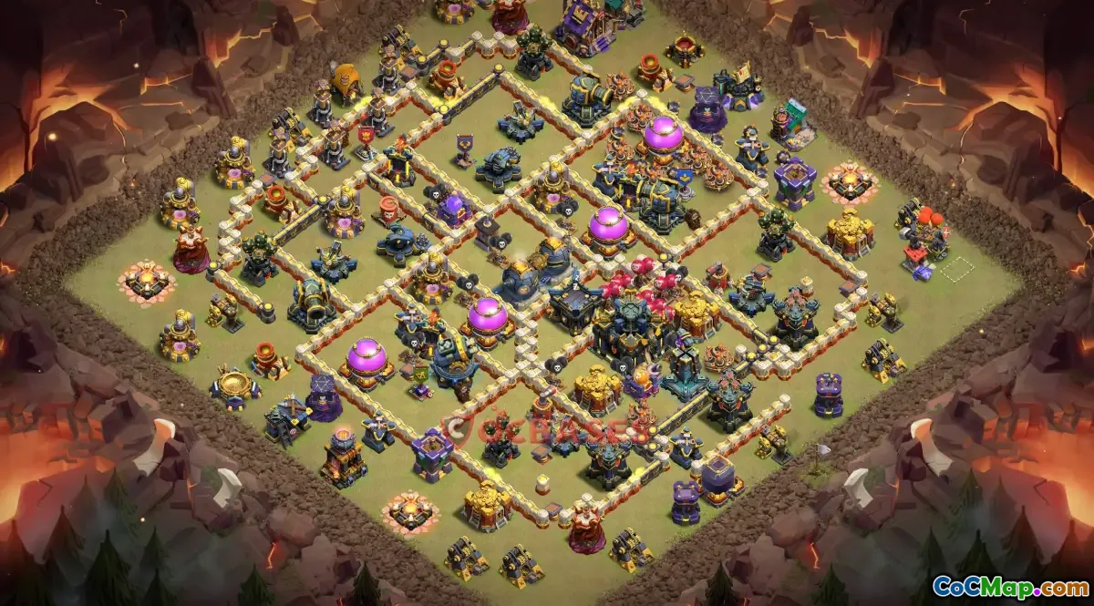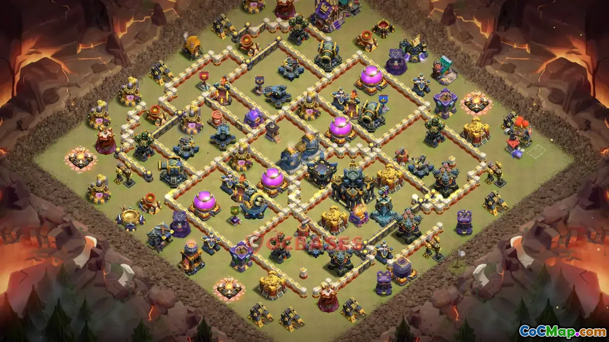 The Town Hall 17 war base layout is designed to maximize defense and protect key structures during clan wars in Clash of Clans. It incorporates strategic placement of defenses and traps to slow down and eliminate attacking troops, especially in competitive settings. The design focuses on making it difficult for enemies to breach the core of the base, ensuring that valuable resources and the Town Hall itself remain protected throughout the attack.