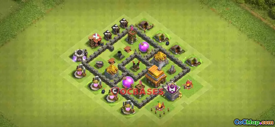 Discover the ultimate Town Hall 4 farming base! Anti-ground & anti-balloon designs for optimal protection. Check out the copy base link! - Papa Calling Gaming