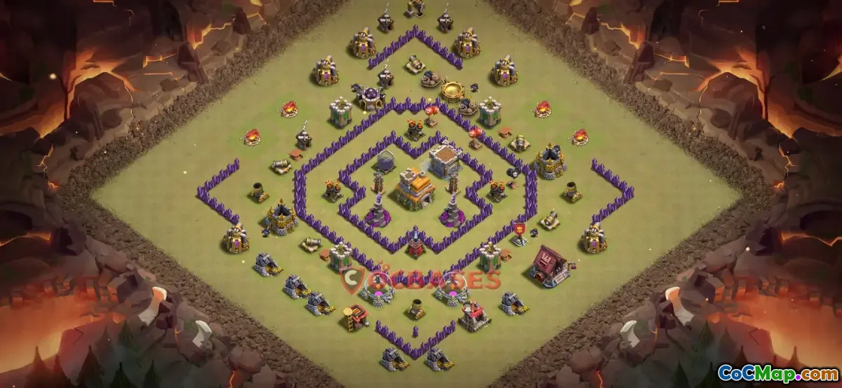 The Town Hall 7 war base in Clash of Clans is an important layout design for players who want to defend against enemy attacks during clan wars. At this level, players need to focus on protecting their resources and defending their base from coordinated attacks by other players. A well-planned war base layout typically includes strategic placement of walls, defensive structures, and traps to maximize their effectiveness and create a strong line of defense. The goal is to make it difficult for opponents to achieve a high percentage of destruction and earn stars.