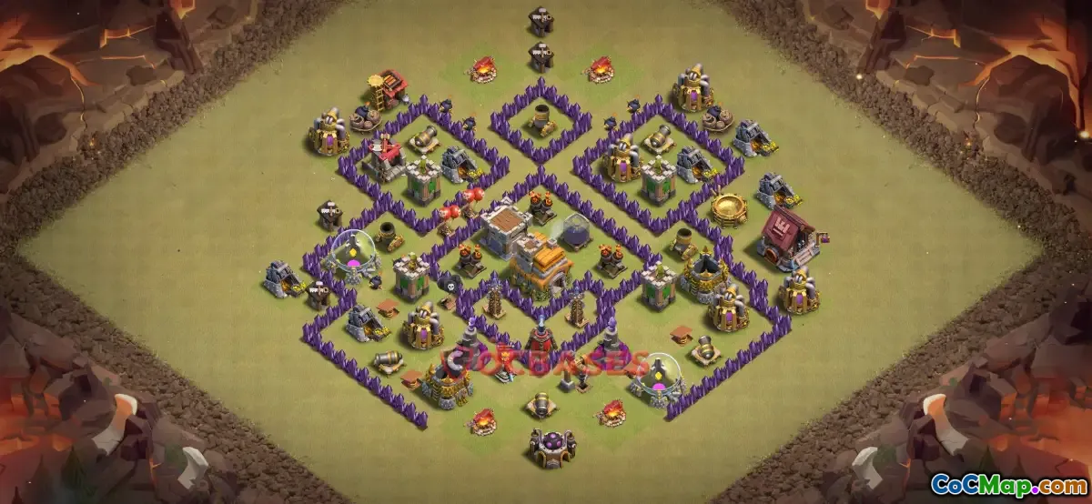 The Town Hall 7 war base in Clash of Clans is designed to provide a balanced defense strategy for players during clan wars. At this level, players focus on protecting key resources and the Town Hall itself while setting up defensive structures to slow down attacking enemies. The layout typically emphasizes centralized placement of the Town Hall, surrounded by walls and defensive buildings like cannons, archer towers, and mortars to create a strong defensive perimeter.