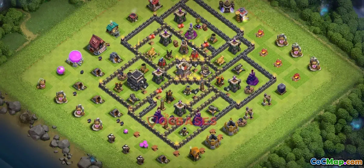 Designed for durability and resource security, this base layout is perfect for Clash of Clans players focusing on farming at TH9. The included copy link allows players to quickly adopt the design and benefit from its optimized anti-dragon features. Elevate your farming game by defending your resources effectively against aerial assaults with this specialized base layout.