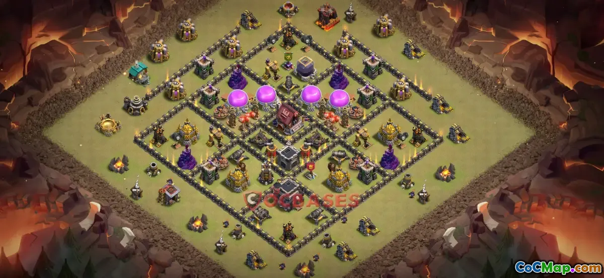 The Town Hall 9 war base in Clash of Clans is designed to provide a strong defense during clan wars. It typically features strategic placement of defensive structures such as cannons, Archer Towers, and Wizard Towers to cover key areas of the base. The placement of walls and traps is also essential to slow down and redirect attacking troops, making it challenging for opponents to break through and achieve a three-star victory. A well-designed Town Hall 9 war base balances the need to protect resources and the Town Hall itself while maximizing the effectiveness of defenses against various attack strategies.
