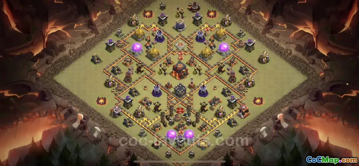 Several prominent base designs have emerged for TH10 bases that specifically focus on defending against three-star attacks. These bases often feature a central core that houses key defensive structures and resources. This core is typically surrounded by a layered wall structure, which adds an additional challenge for attackers trying to penetrate the base's defenses. The strategic placement of traps and defenses ensures that multiple types of attacking strategies are countered effectively.