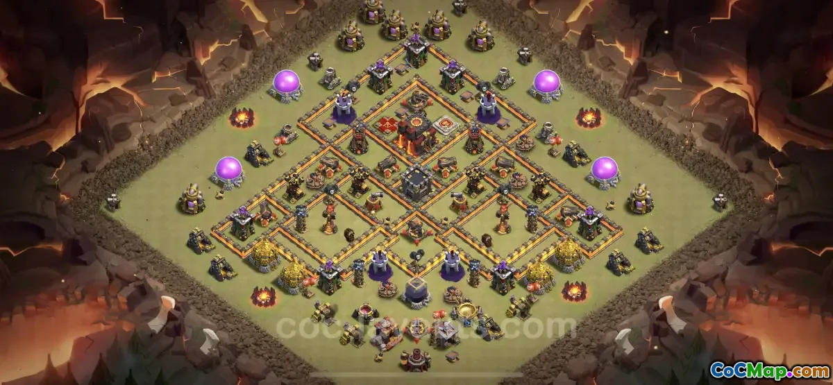 The Best War Base for Town Hall Level 10 (TH10) is designed to protect against various attacking strategies used in Clan War Leagues (CWL). Having a solid base layout is crucial for defending against enemy attacks, as it helps in minimizing damage and maximizing the chances of achieving a defensive victory. This particular layout is labeled as an "anti-everything" base. This term suggests that the base is constructed to withstand attacks from diverse troop combinations and tactics, making it an optimal choice for competitive battles.