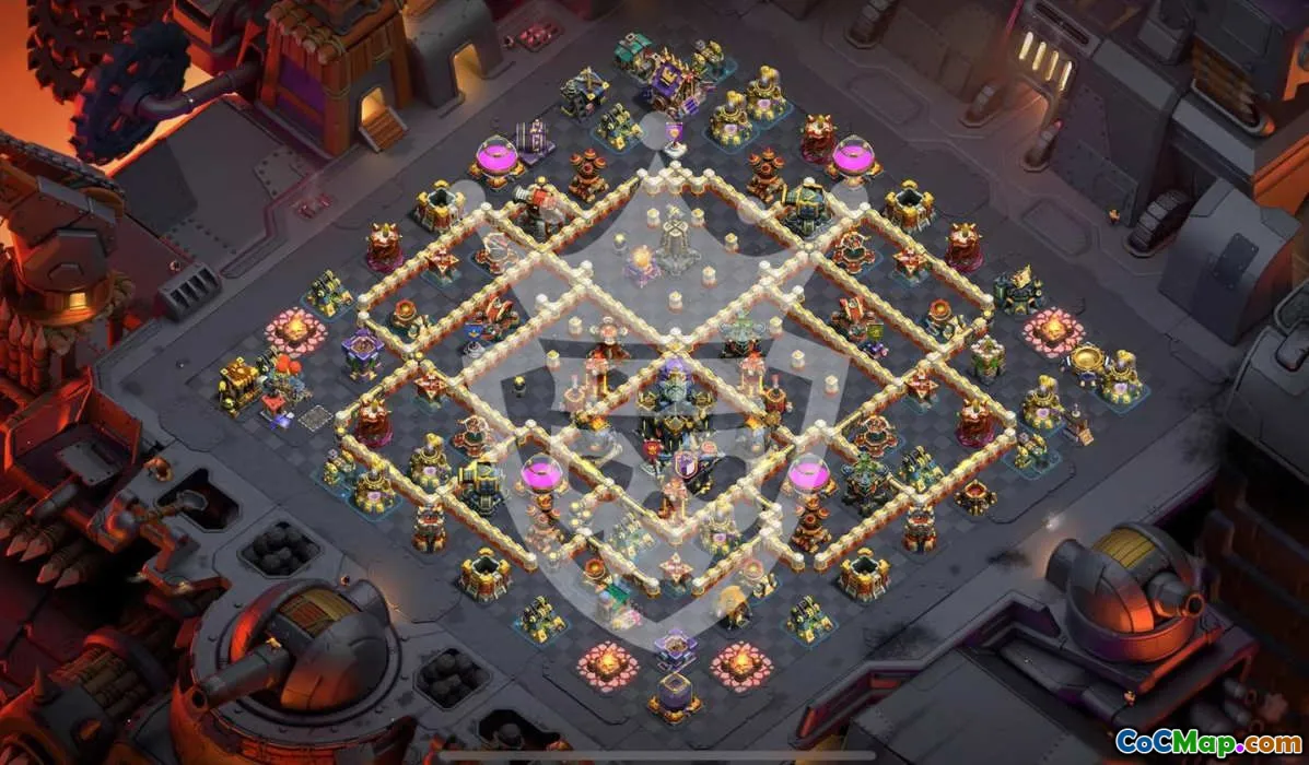 Discover a highly effective Town Hall 17 base layout designed for both defense and trophy pushing. This layout safeguards your core structures and resources while offering strong anti-barracks and anti-wall protection. The strategic placement of traps and defenses makes it difficult for attackers to break through, ensuring your village remains secure during wars and raids.
