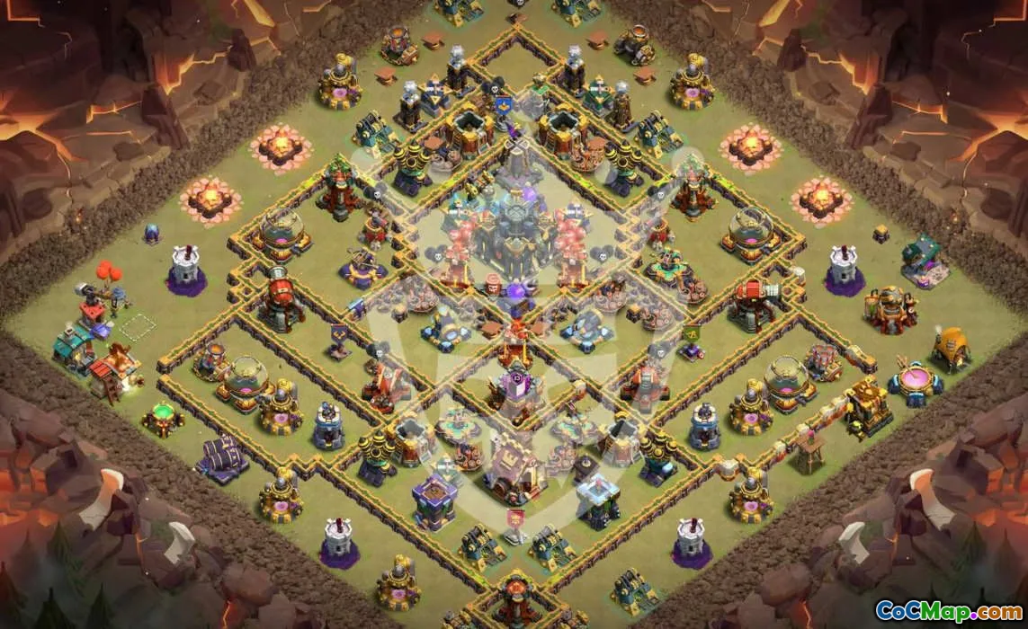 Looking for an effective and visually optimized base layout for Town Hall 17 in Clash of Clans? This layout is designed to provide strong defense against attackers, protect valuable resources, and enhance your war performance. It combines strategic placement of defenses, walls, and traps to ensure maximum protection while maintaining accessibility for your troops during attacks.