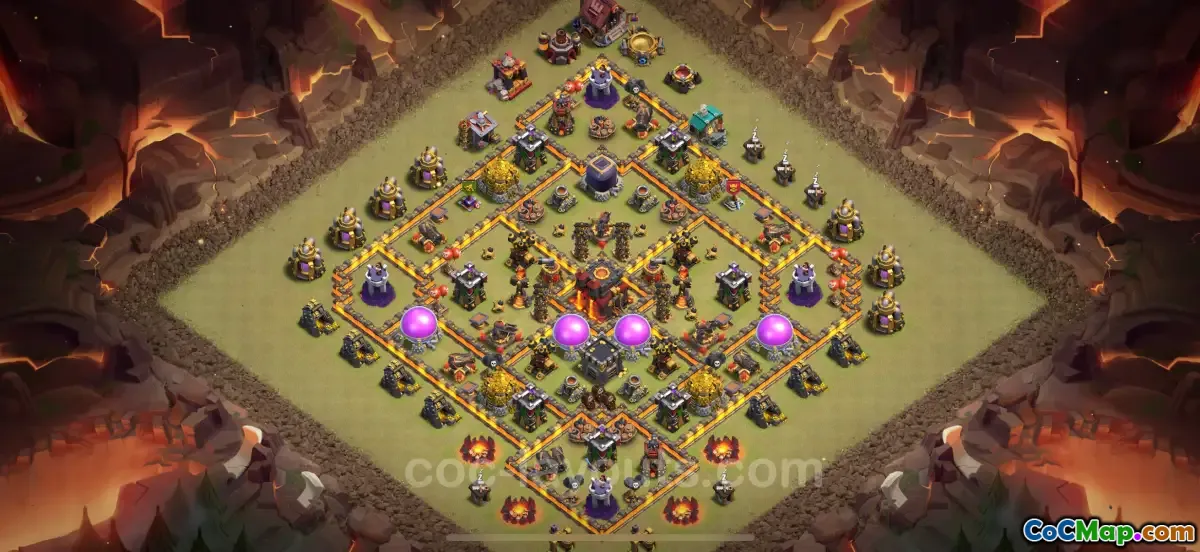 The TH10 War Base with the “Anti Everything” feature is crafted to handle a wide range of attack types, minimizing the chances of opponents breaking in and achieving their goals. This design takes into consideration the strengths and weaknesses of different units, ensuring that defenses are placed strategically to mitigate damage and prevent the enemy from accessing critical structures. By implementing various traps and defensive buildings, this base aims to thwart an attacker's plans effectively.