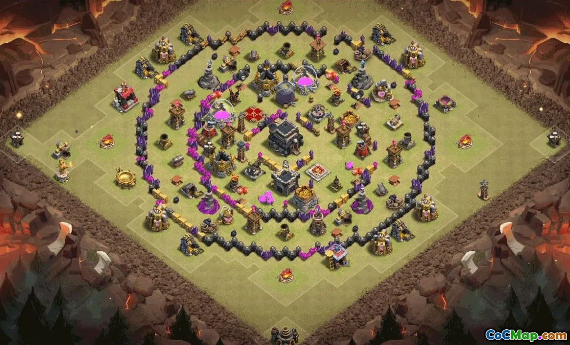 Explore a collection of optimized Town Hall 9 base layouts designed for various purposes such as trophy pushing, war defense, and village protection. Each layout features strategic placements of defenses, traps, and walls to maximize defensive strength and prevent enemy raids. These layouts are highly recommended for players aiming to improve their defenses and climb the ranks effectively.