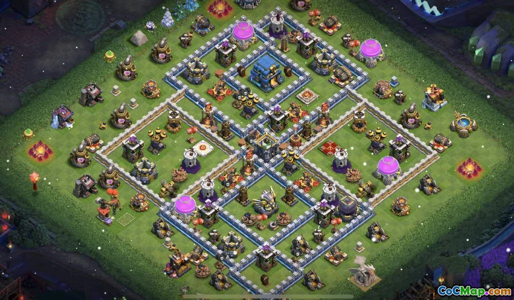 Clash of Clans biedt een verscheidenheid aan basislay -outs die zijn ontworpen voor verschillende strategieën en doelstellingen, met name op het niveau van het stadhuis. Spelers zoeken vaak effectieve ontwerpen voor hun thuisdorp die hun middelen kunnen beschermen en tegelijkertijd een actieve gameplay mogelijk maken. Een van de populaire soorten bases zijn landbouwbases, die prioriteit geven aan het genereren en bescherming van middelen, en trofee -bases, die gericht zijn op het handhaven of vergroten van trofeeën door defensieve sterkte. Elk lay -outtype wordt geleverd met zijn unieke plaatsing van gebouwen, vallen en verdedigingen die zijn afgestemd op de doelpunten van de speler.