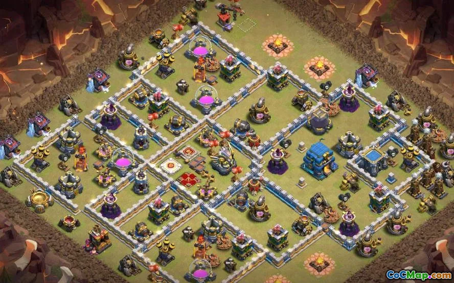 Bij het ontwerpen van een landbouwbasis in het stadhuis 12 ligt de focus op het beschermen van middelen, zoals Elixir en Gold, tegen vijandelijke invallen. Dit type basislay -out plaatst meestal opslag in veilige posities en gebruikt strategisch verdedigingen om aanvallers af te schrikken. Aan de andere kant is een trofee -basis gericht op het beschermen van trofeeën, waarbij de verdediging gelijkmatiger wordt verstrooid om het hele dorp te dekken en bekwame aanvallers af te schrikken. Voor beide soorten bases moeten spelers rekening houden met de lay -out die het beste bij hun speelstijl en doelstellingen in het spel past.