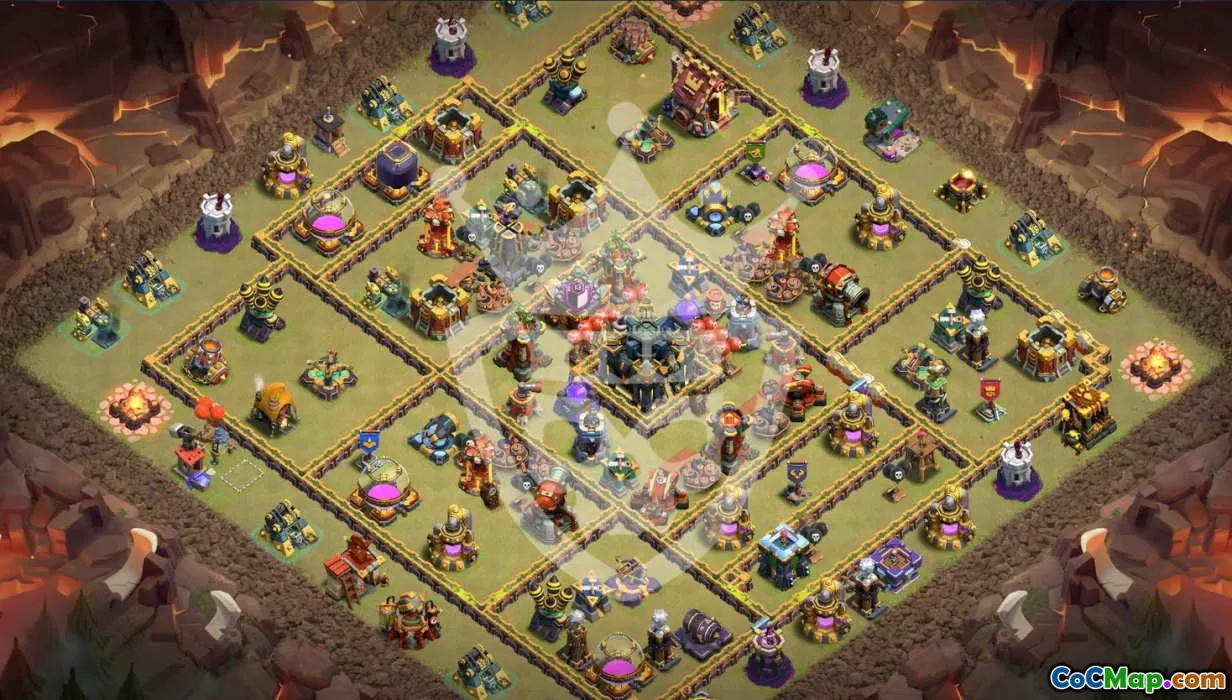Discover a highly effective Town Hall 17 base layout designed for optimal defense in Clash of Clans. This layout provides strong protection for your resources, Clan Castle, and Town Hall, making it ideal for trophy pushing and clan wars. Easily copy the structure with a provided link to implement the layout in your game and enhance your defenses.