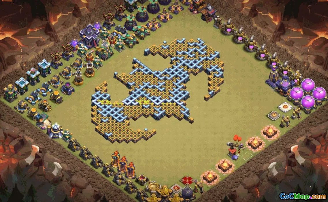 This Town Hall 15 base combines a funny, eye-catching appearance with solid defenses, making it suitable as both a home village and a progress base. The layout uses tight compartments, protected storages, and smart trap placements to deter attackers while keeping key targets accessible for farming and trophy pushes. A ready-to-copy base is provided along with a CoC map view to help you preview and share the design.