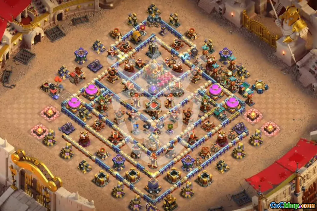 Discover a collection of expertly designed Clash of Clans Town Hall 16 base layouts, perfect for securing your base in various scenarios including home defenses, trophy pushing, and clan wars. These layouts are crafted to enhance defense and strategy, ensuring you protect your resources and defend against enemy attacks effectively. Each layout comes with a copy link, allowing you to easily implement and customize it for your village.