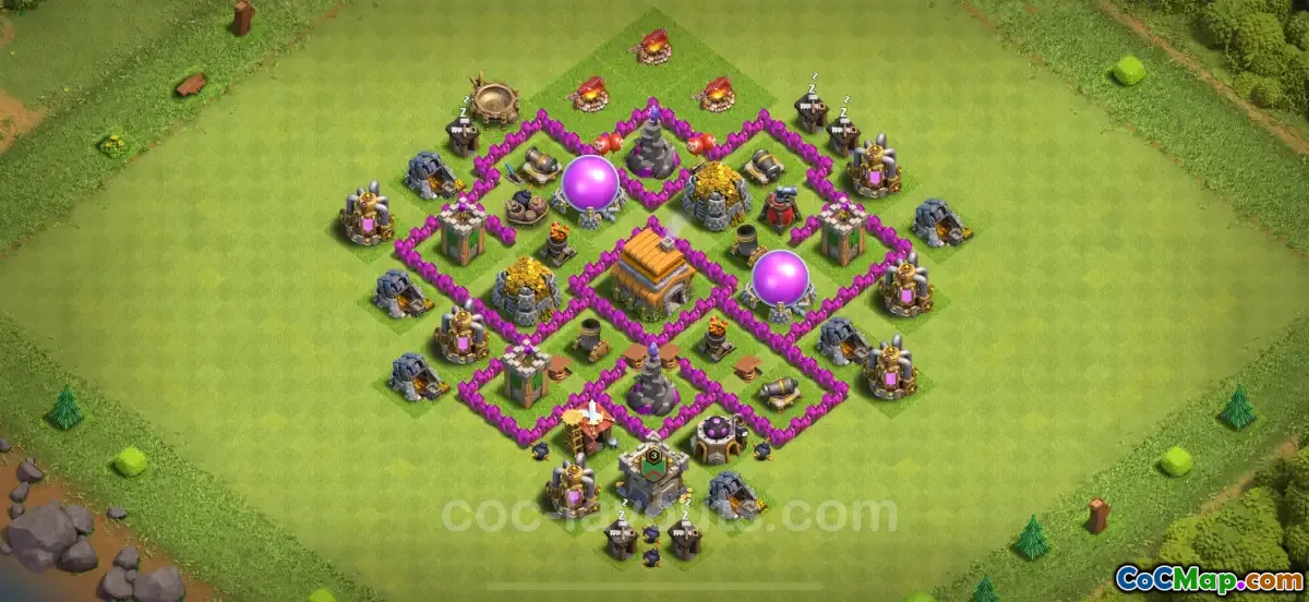 In Clash of Clans biedt Stadhuisniveau 6 spelers een unieke kans om hun basisontwerp te optimaliseren voor zowel de verdediging van grondstoffen als de landbouw. Een goed geplande basisindeling op dit niveau is cruciaal voor het beschermen van elixers, goud en donkere elixers, die nodig zijn voor het upgraden van troepen en gebouwen. Het ontwerp is doorgaans gericht op het effectief integreren van verschillende verdedigingsstructuren, terwijl ook de beschikbare ruimte efficiënt wordt benut.