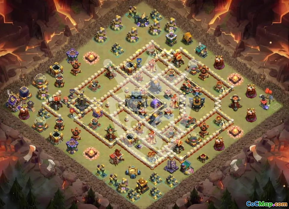 Explore a variety of Clash of Clans Town Hall 17 (TH17) base layouts designed to enhance your defense and gameplay strategy. These layouts include home village configurations, trophy bases for optimal ranking protection, war base setups to secure victories, and comprehensive maps tailored for maximum resource protection. Each layout is crafted with strategic placement of defenses, traps, and walls to counter common attack strategies and ensure your village remains resilient against enemy raids.