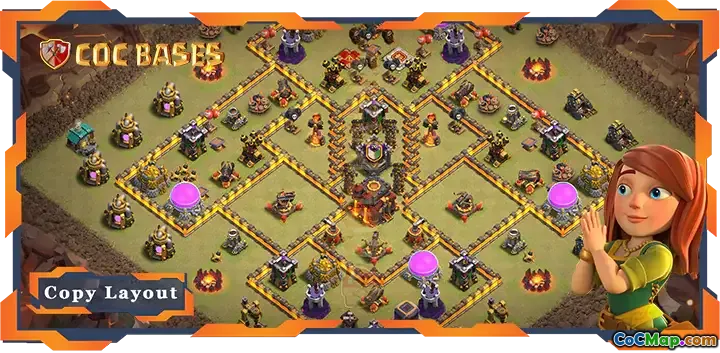 The Top Base TH10 layout in Clash of Clans is designed for players aiming to excel in various game modes, including Clan Wars and Clan War Leagues (CWL). This type of base often employs a strategic design that makes it difficult for opponents to secure two stars, which is crucial in competitive play. The layout is engineered to protect key structures and ensure that attackers face challenges while attempting to take down the base, especially when using standard strategies. This focus on defense provides players with a significant advantage during battles.