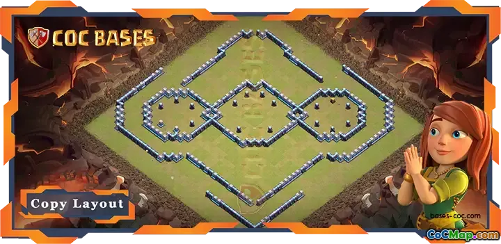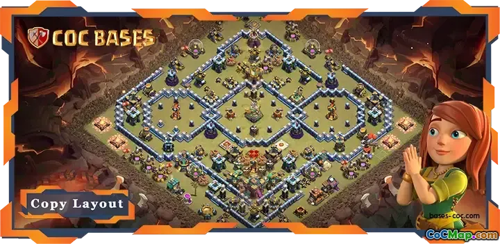 Deze oorlogsbasis, ontworpen voor Stadhuis 14, is gestructureerd om verschillende aanvalsstrategieën effectief tegen te gaan. Het is specifiek geclassificeerd als een Anti Everything, War en Clan War League (CWL)-indeling, waardoor een solide verdediging tegen verschillende soorten bedreigingen ontstaat. De onderscheidende lay-out is bedoeld om te voorkomen dat aanvallers gemakkelijk twee sterren kunnen krijgen, cruciaal in oorlogsscenario's. Door defensieve structuren strategisch te plaatsen, vergroot deze indeling de veerkracht tegen vijandelijke invallen.