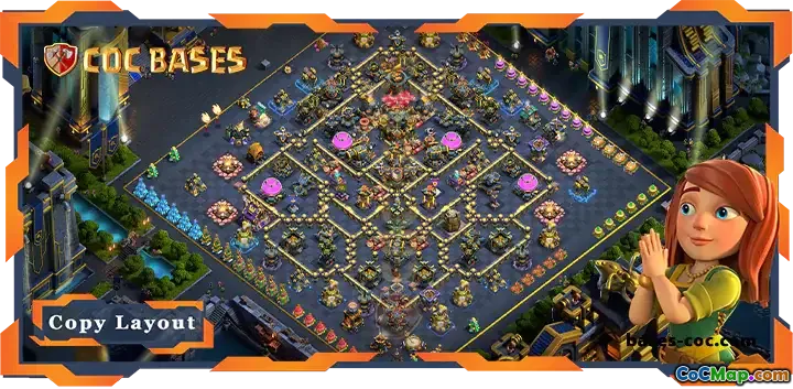 This top TH17 Clash of Clans base layout is expertly designed to prevent opponents from achieving a 2-star victory, making it ideal for competitive Legend League play. The layout incorporates well-placed air and ground defenses that cover key areas, ensuring maximum protection during attacks.