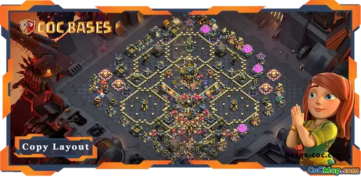 This top-tier TH17 war base layout provides robust protection against common attack strategies, making it highly effective in preventing 3-star victories. Designed with strategic placement of defenses, heroes, and traps, it ensures attackers face maximum difficulty breaching core areas.