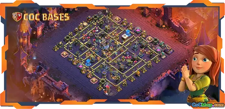 Discover the best TH18 Clash of Clans base layout optimized for War CWL, featuring strong defenses and an anti-3 star design. Perfect for Clan Wars.